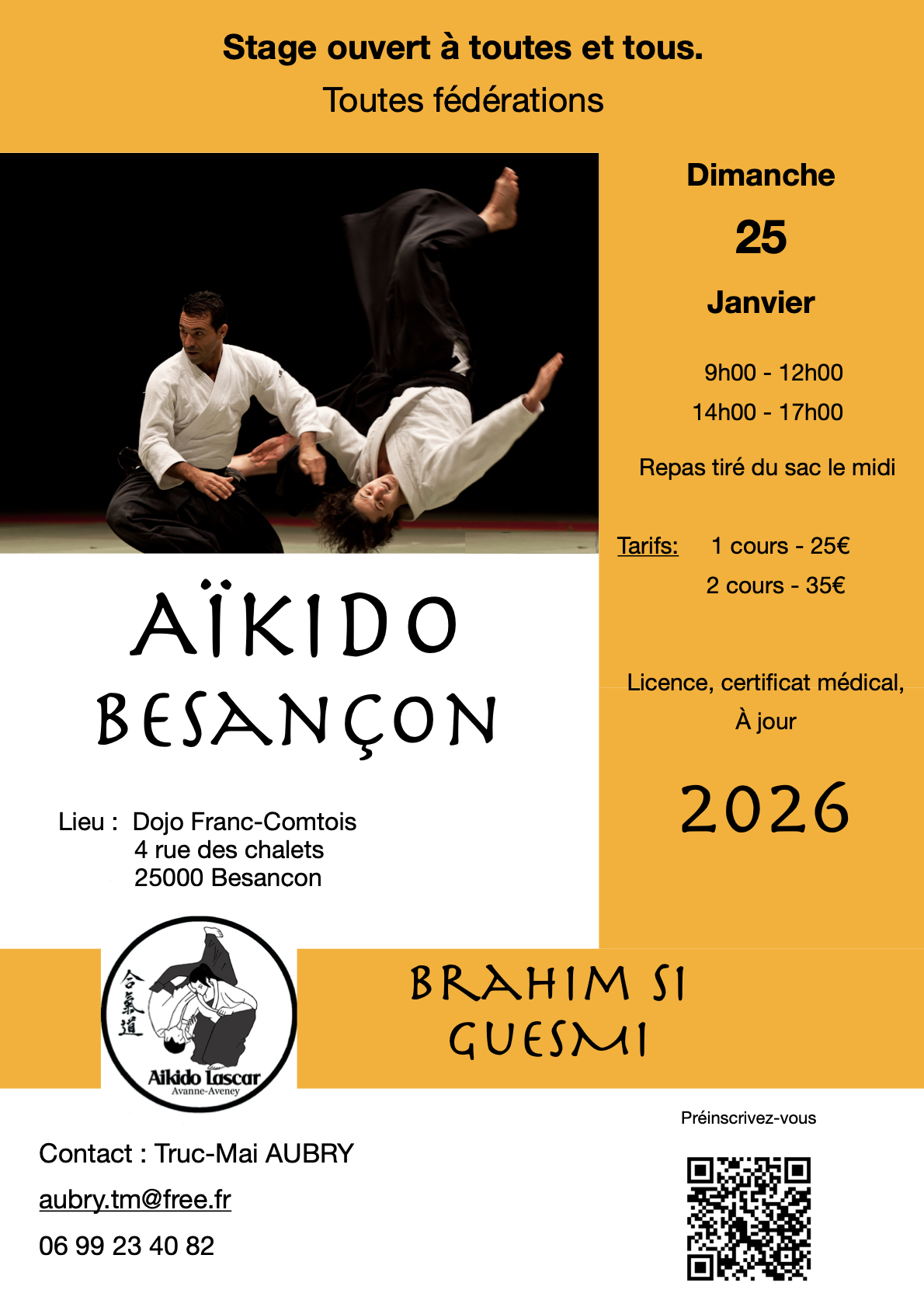 Stage d'Aïkido à Besançon animé par Brahim Si Guesmi le dimanche 25 janvier 2026