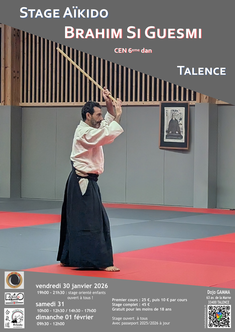 Stage d'Aïkido à Talence animé par Brahim Si Guesmi du vendredi 30 janvier 2026 au dimanche 1 février 2026
