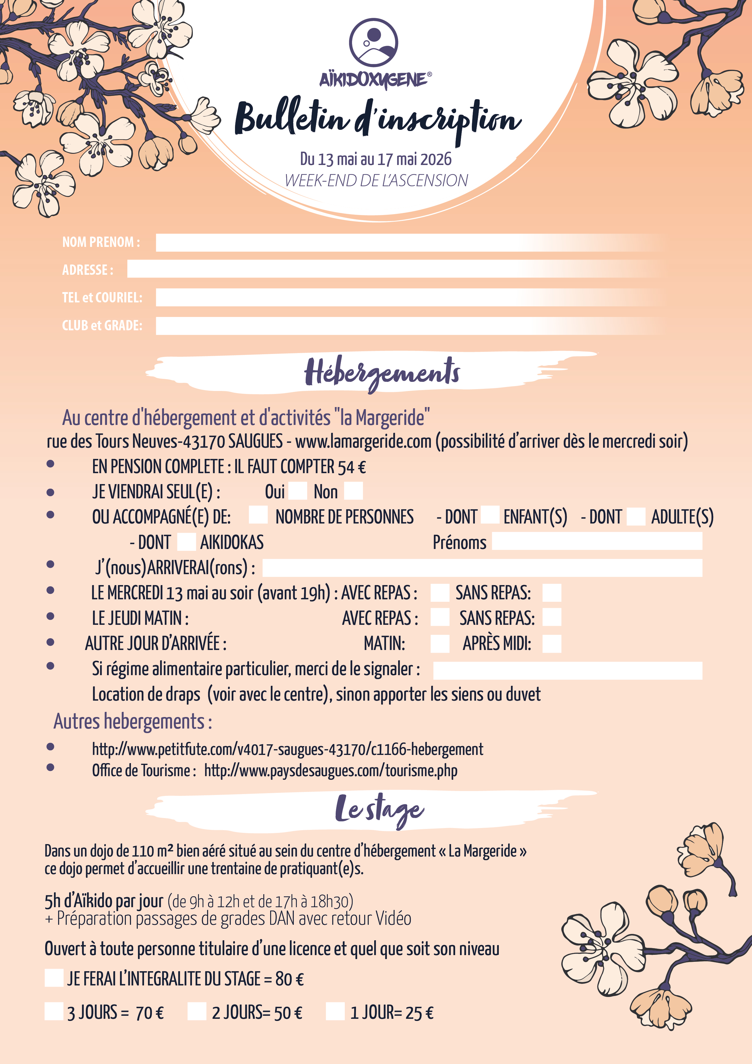 Stage d'Aïkido à Saugues animé par CHEYMOL du mercredi 13 mai 2026 au dimanche 17 mai 2026