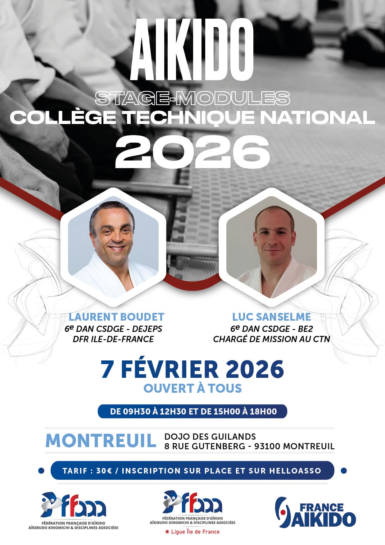 Stage d'Aïkido à Montreuil animé par Luc Sanselme et Laurent Boudet le samedi 7 février 2026