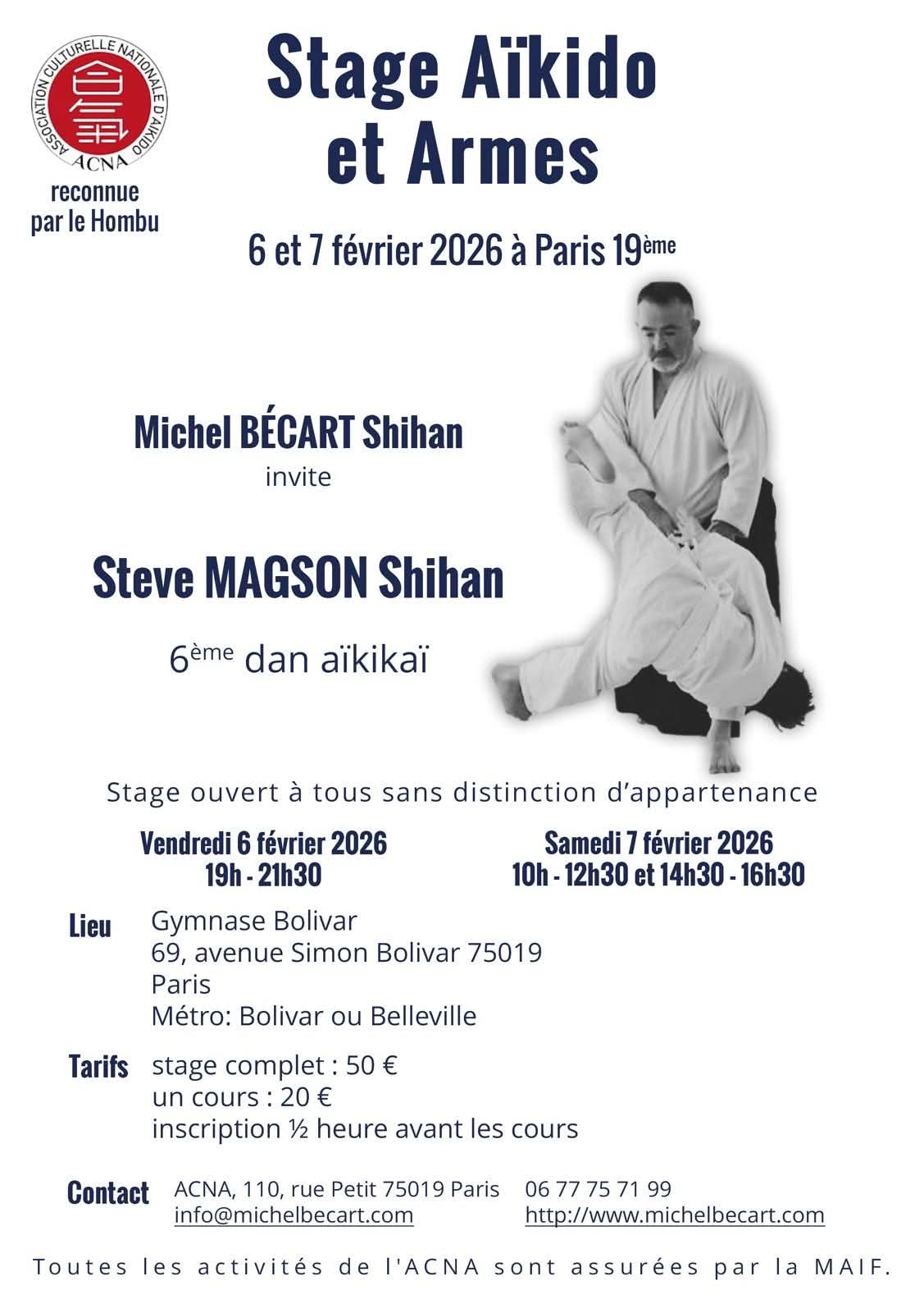 Stage d'Aïkido à Paris animé par Steve Magson du vendredi 6 février 2026 au samedi 7 février 2026